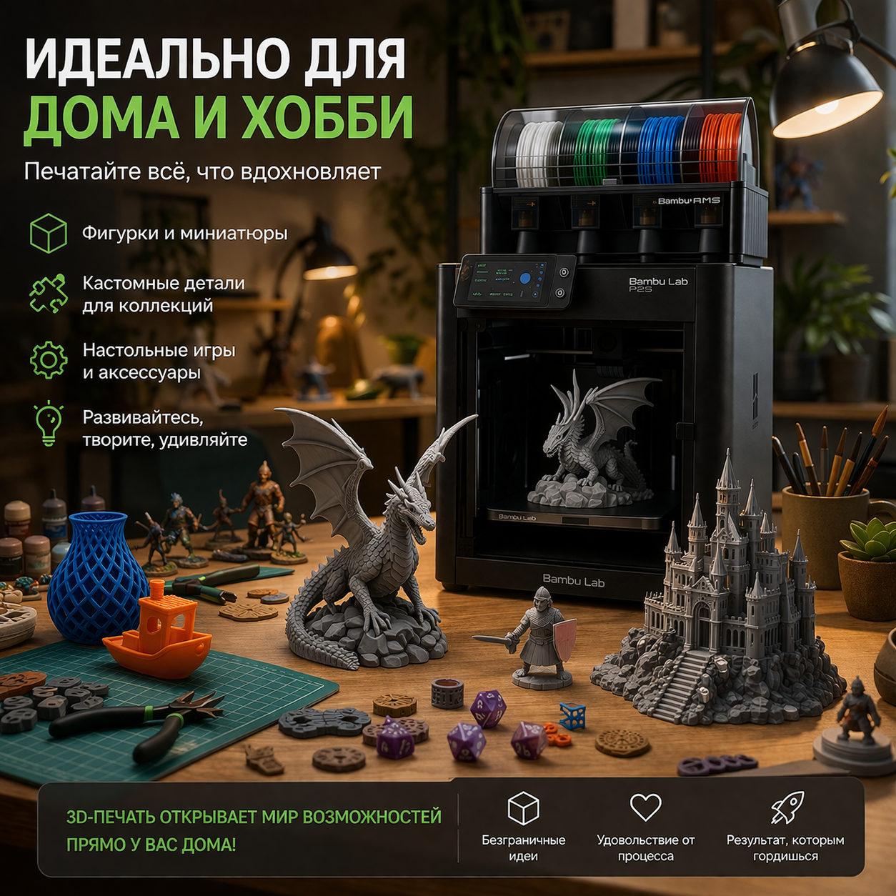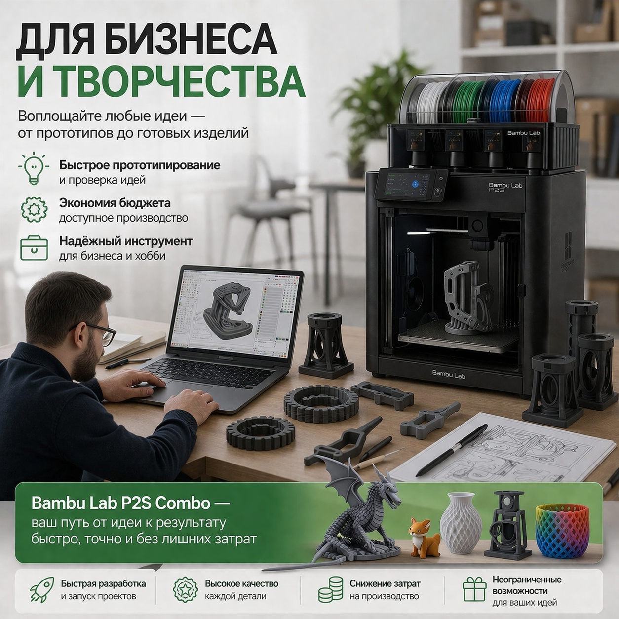 Точность, скорость, доступная стоимость — идеальное решение для прототипов, макетов и готовых изделий.